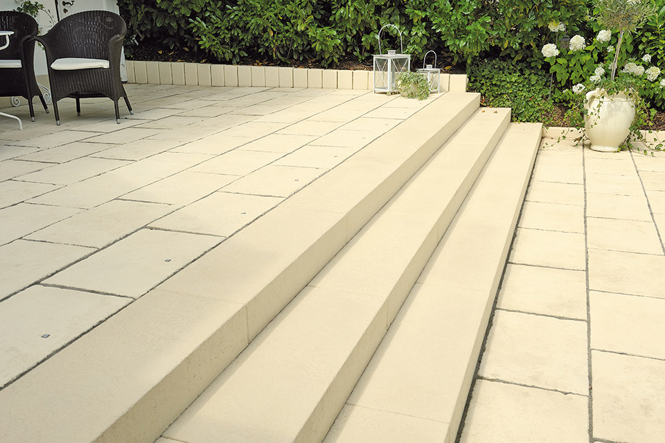 Mit den Opus-Terrassenplatten fällt es leicht, ein gastfreundliches Ambiente zu schaffen. Zum einen bieten zahlreiche Formate individuelle Verlegemöglichkeiten. Zum anderen gibt es passende Elemente wie Blockstufen und Einfassungssteine.