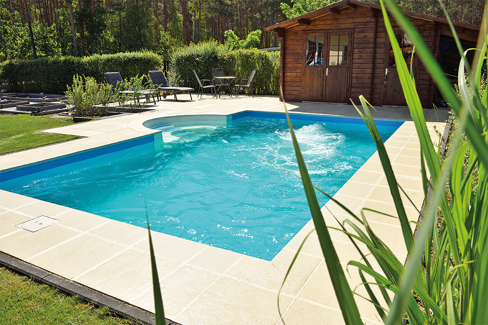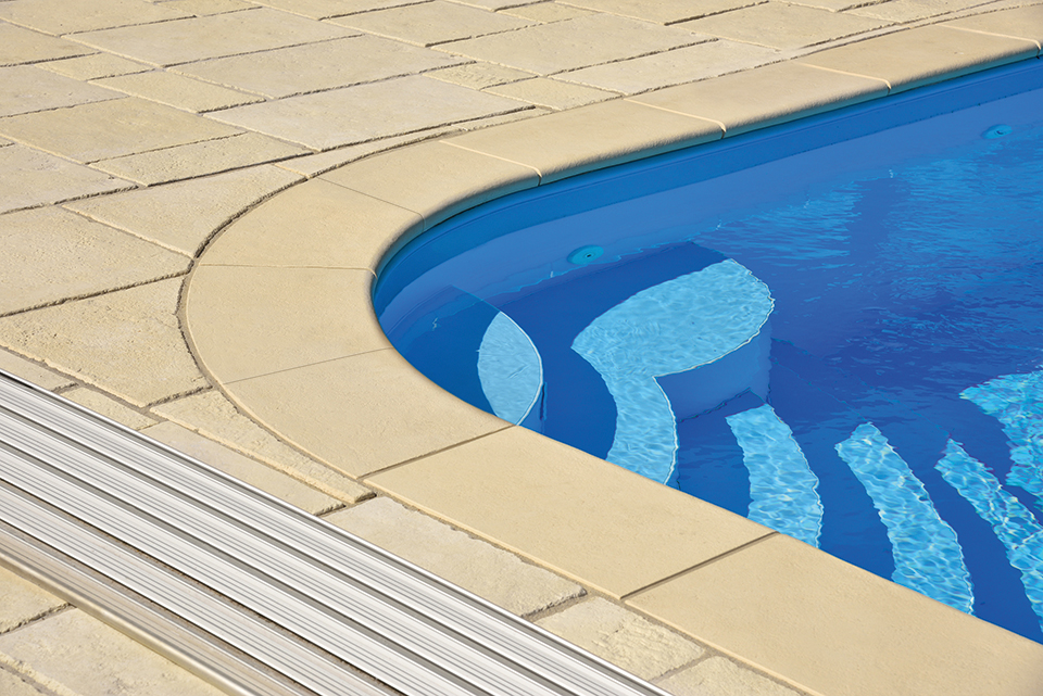 Die Beckenrandsteine Solum verleihen Ihrem Pool einen mediterranen Charakter. Ob kreisförmige Pools, halbrunde Treppeneinstiege – mit den Solum-Steinen stehen Ihnen gerade und runde Elemente zur Auswahl. Für ein stimmiges Gesamtbild gibt es die Solum-Terrassenplatte als Ergänzung.